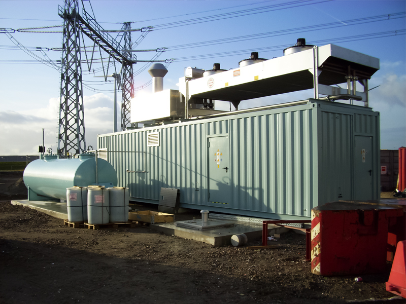 800 kVA Notstromaggregat im Container eines Energieversorgers.